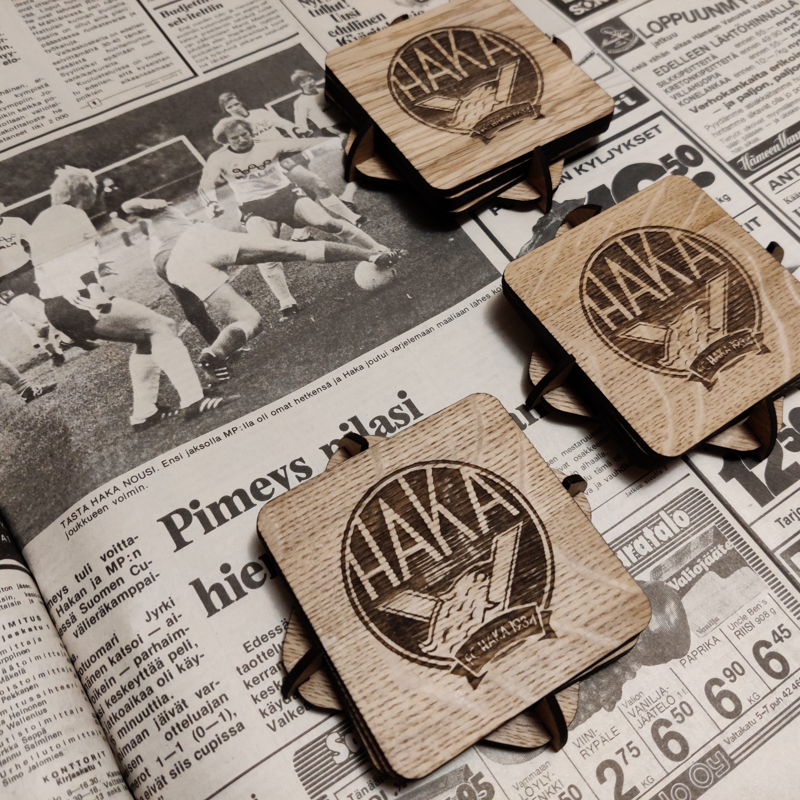 Upeat tammiset lasinaluset, 4kpl/setti + teline