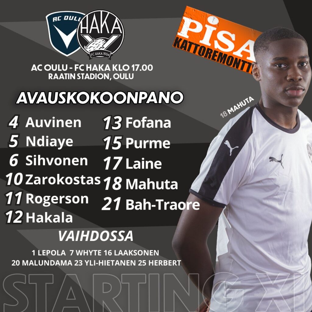 FC Haka matkasi lauantai -iltana AC Oulun vieraaksi Raatin stadionille Ouluun. Poissaoloista kärsineen koskilaisjoukkueen peli ei pysynyt kasassa ensimmäisellä jaksolla ja kotijoukkue kuittasi pisteet avausjakson kolmella osumallaan puhtaasti 3-0.