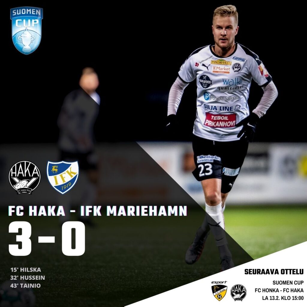 Kauden 2021 tosipelit saatiin lauantaina käyntiin, kun Haka kohtasi Suomen Cupin avauskierroksella IFK Mariehamnin. Paljon parempaa avausta ei olisi valkopaidoilta voinut odottaa, sillä kotiintuomisina Eerikkilästä oli maistuva 3-0 -voitto!