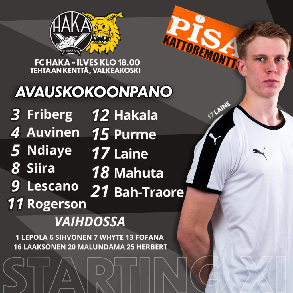 Hakan ottelut jatkuvat sunnuntaina FC Lahden vieraana, minkä jälkeen on edessä parin viikon ottelutauko. Haka sai Ilves -kohtaamisessa pientä jobin postia, sillä Ryan Mahuta ja Janne-Pekka Laine katselivat molemmat kertaalleen keltaista korttia, mikä tarkoittaa molemmille yhden ottelun huilia korttitilin täytyttyä.