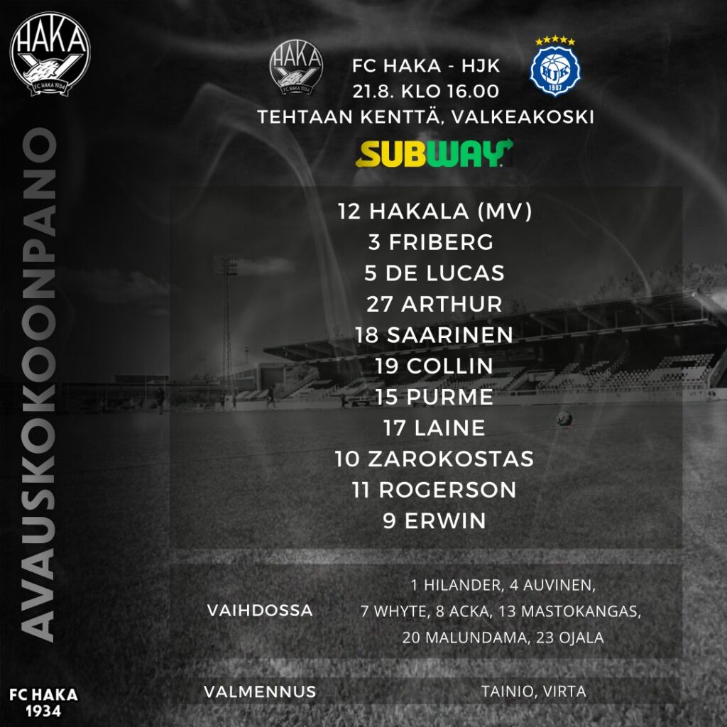 – Eka puolituntinen me maltettiin puolustaa joukkueena ja päästiin hyödyntään meidän vahvuuksia, eli tilanteevaihtoja. Niin kuin Tonikin(Koskela) tuossa mainitsi, pomppu sinne tai pomppu tänne tai viimeinen syöttö vähän huolellisempi, niin oltais voitu saada se maali, Hakan päävalmentaja Teemu Tainio pohti ottelun jälkeisessä mediatilaisuudessa.