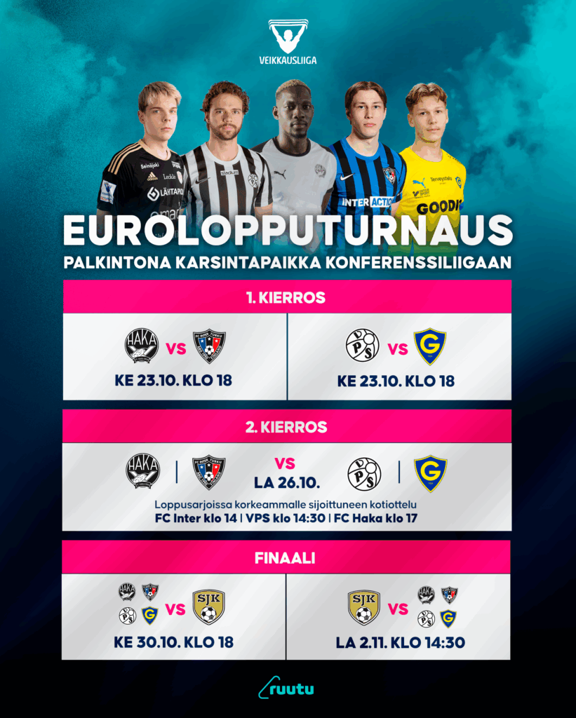 Jos Haka voittaa 2.kierroksen ottelun (VPS/Gnistan vastaan), finaalin 1.osa-ottelu pelataan Tehtaan kentällä ke 30.10. klo 18.00 finaalipaikan suoraan lunastanutta SJK:ta vastaan. Finaalin 2.osaottelu pelataan Seinäjoella la 2.11. klo 14.30.