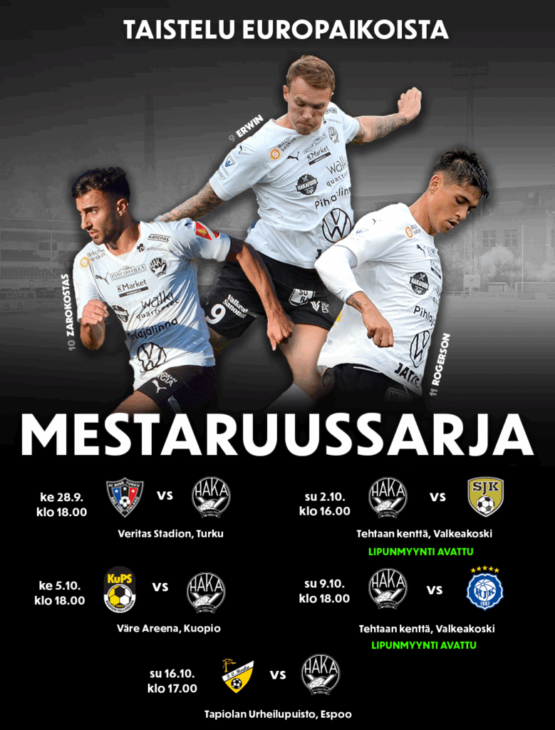 9.10. 16.00 Haka-HJK (Osta liput täältä)