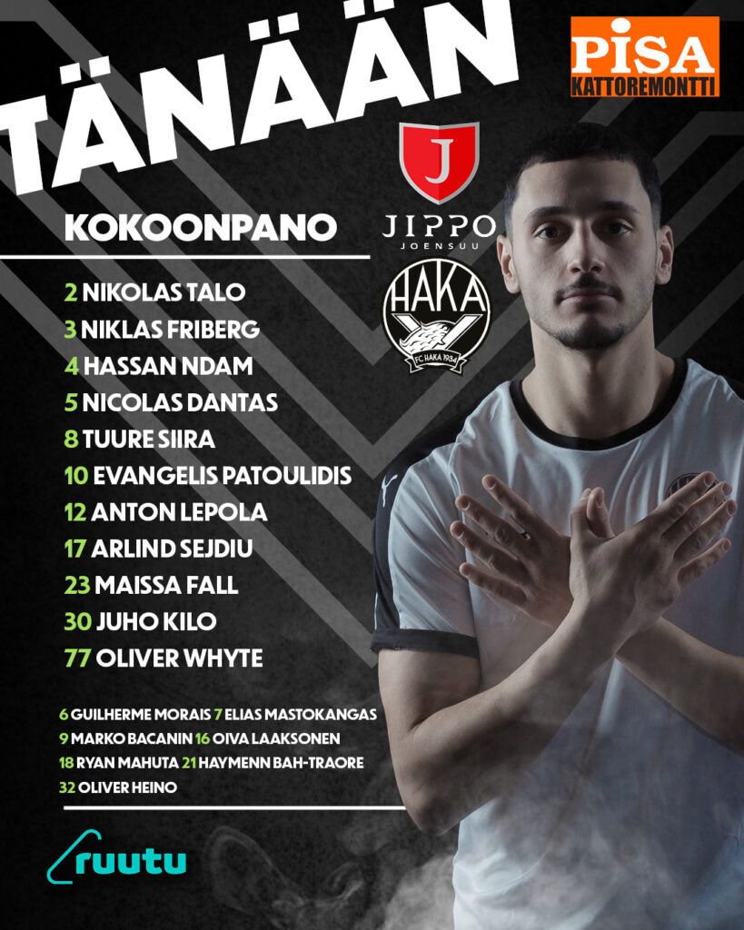 JIPPOn etsikkoaika oli puolestaan toisen jakson alussa, kun joukkue oli kahdesti lähellä kavennusosumaa. Ensin Lassi Forss pääsi puskemaan kulmapotkusta kohti alanurkkaa, mutta tällä kertaa Haka -vahti Anton Lepola esitti paraatipelastuksen. Kymmenisen minuuttia myöhemmin Niklas Haataja laukoi vaikeasta asennosta rangaistusalueella pomppineen irtopallon takatolppaan.