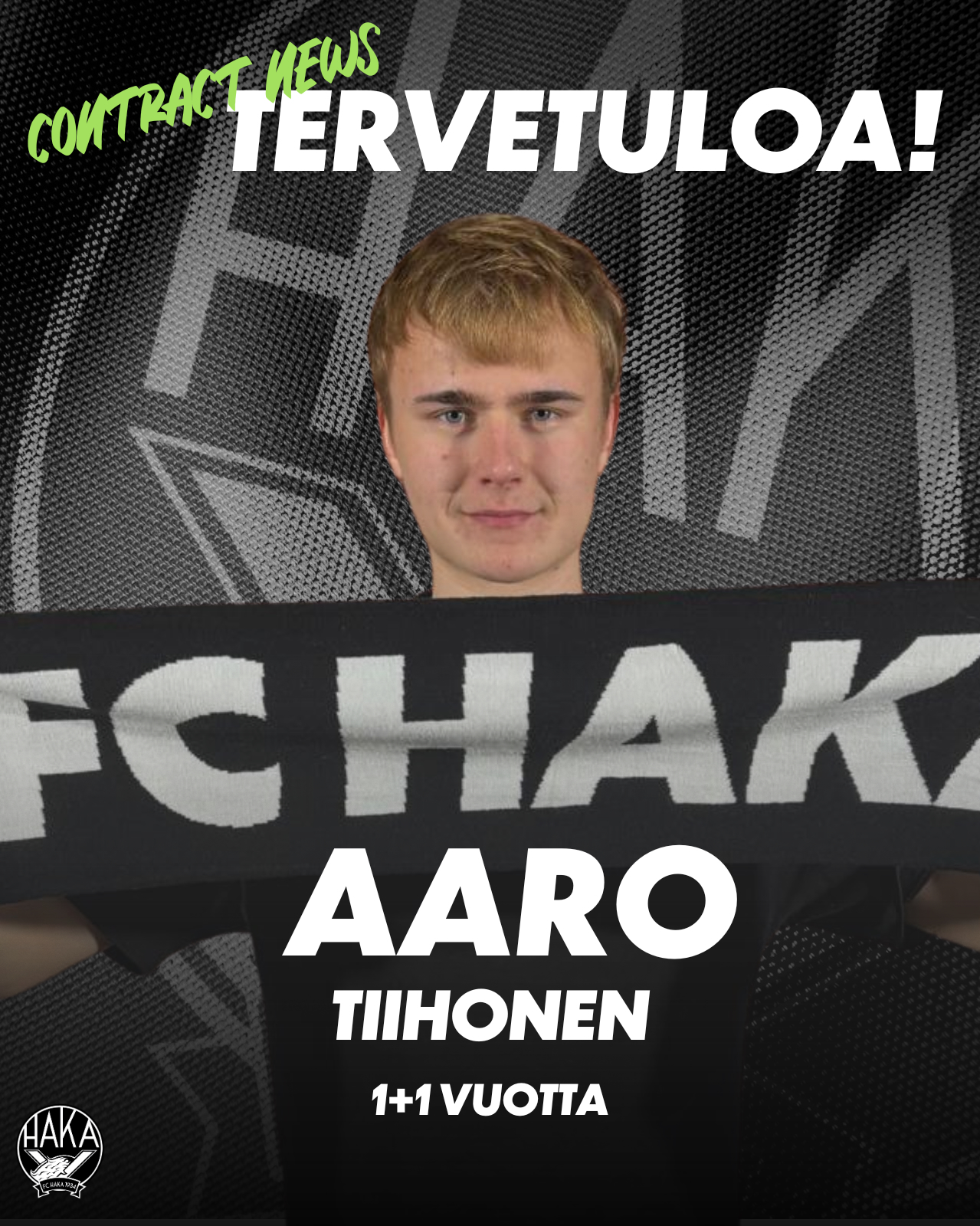 FC Haka ja 20-vuotias oikea laitapuolustaja Aaro Tiihonen ovat allekirjoittaneet 1+1-vuotisen pelaajasopimuksen.