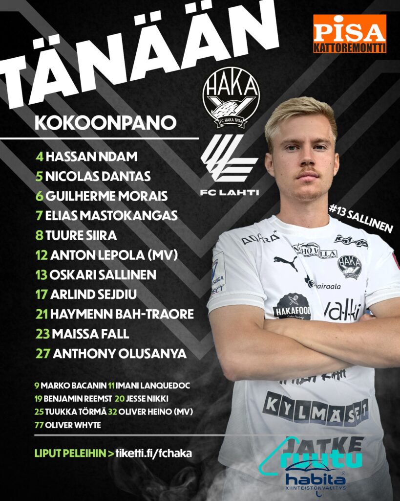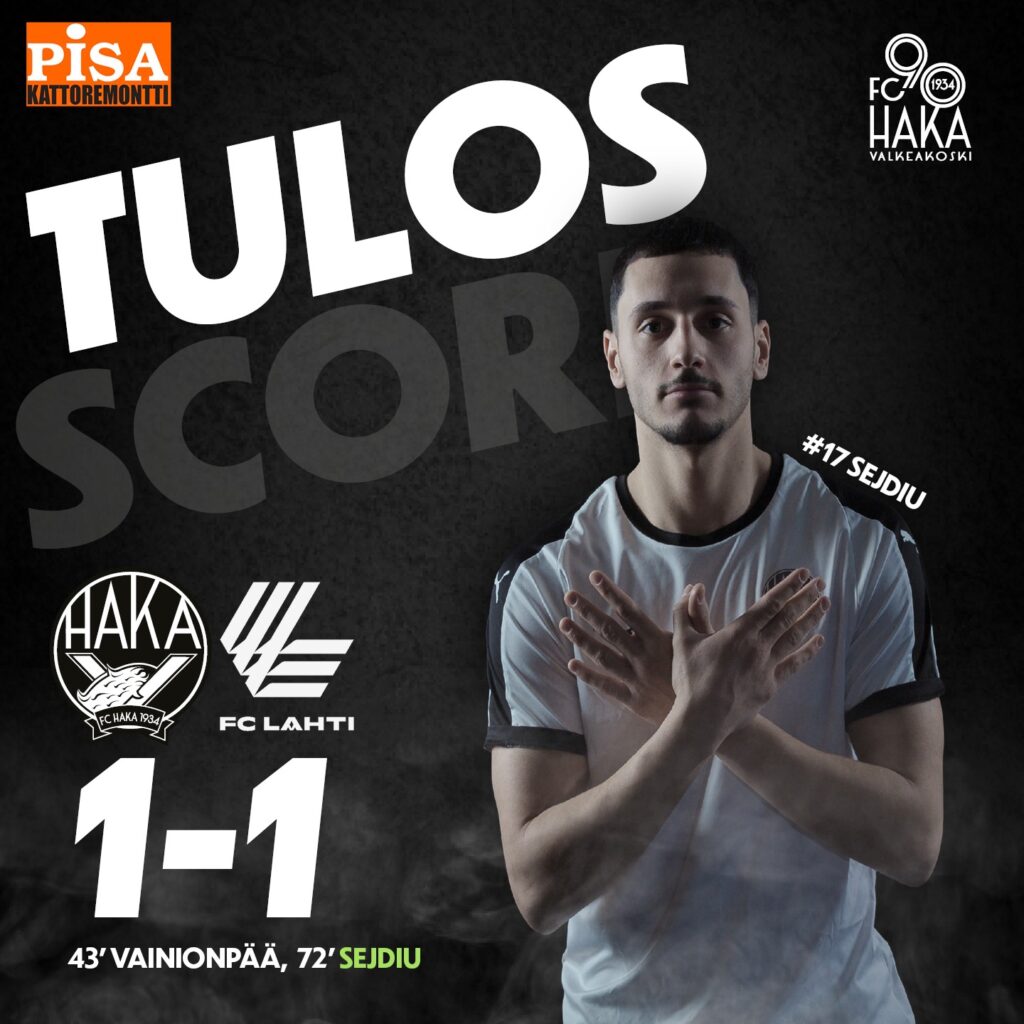FC Haka ja FC Lahti päättivät Veikkausliigan runkosarjan sunnuntai -iltana Tehtaan kentällä. Kaksijakoinen ottelu tarjosi kaksi maalia, joista ensimmäisestä vastasi vieraat ja toisesta kotijoukkue, joten joukkueet päätyivät 1-1 -tasapeliin, kuten edelliselläkin kerralla joukkueiden kohdatessa huhtikuussa Tammelan Stadionilla.