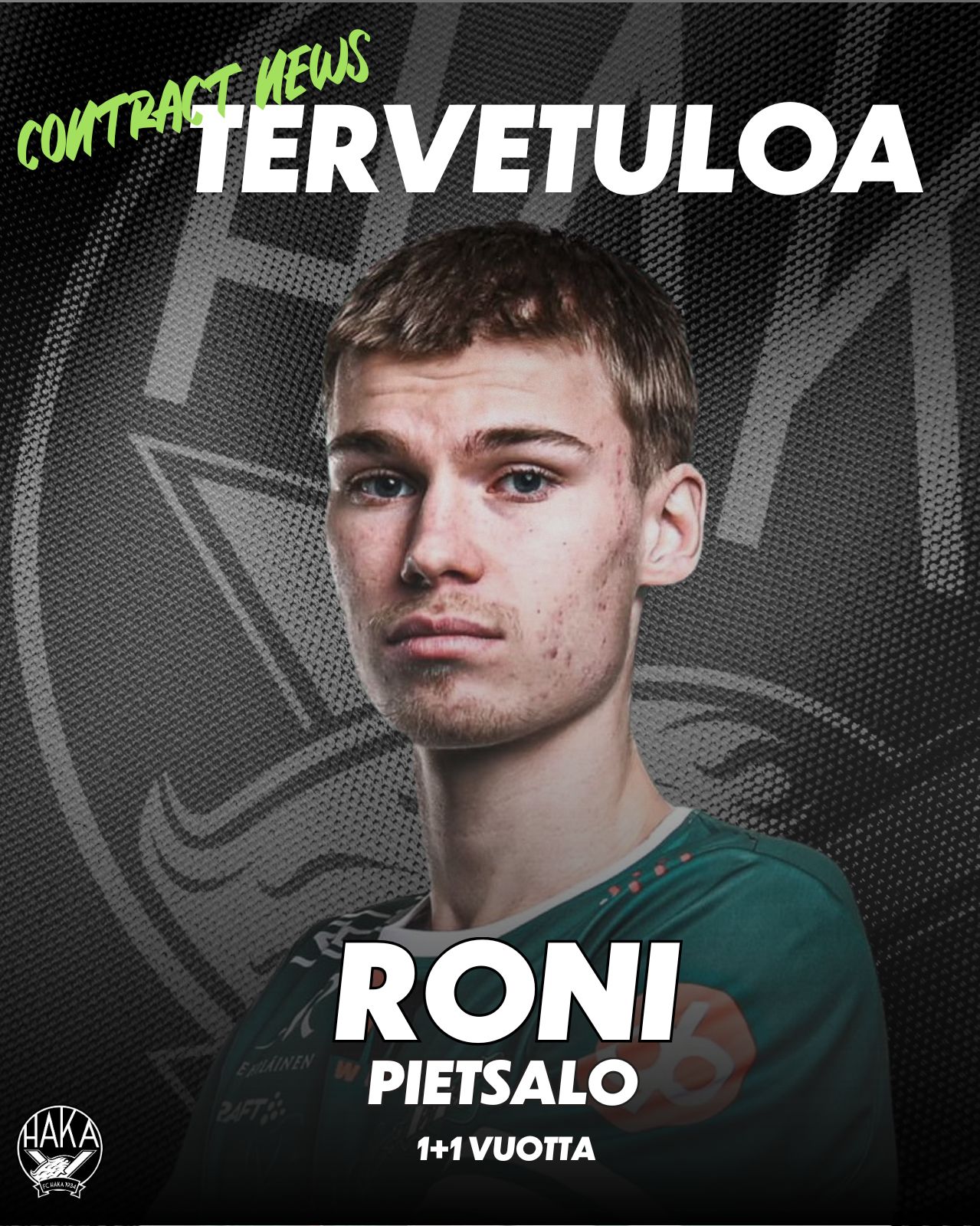 FC Haka ja 23-vuotias hyökkäävä keskikenttäpelaaja Roni Pietsalo ovat allekirjoittaneet 1+1 -vuotisen pelaajasopimuksen.