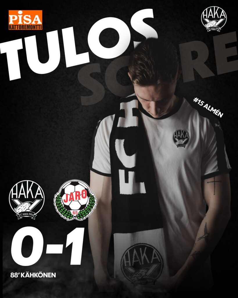 FC Haka ei saanut toivomaansa tulosta perjantaina Tehtaan kentällä, vaan sarjanousija FF Jaro vei täyden pistepotin viime hetkien osumallaan 0-1.