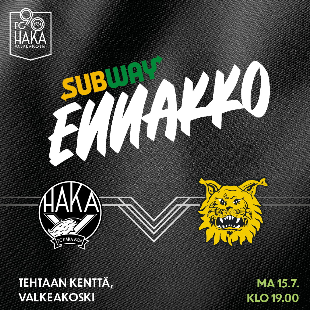FC Haka – Ilves maanantaina 15.7. kello 19.00. Koko perheen otteluetkot alkaa kello 15.00 Lepänkorvan puistossa ja Tehtiksen portit avautuvat 17.15.