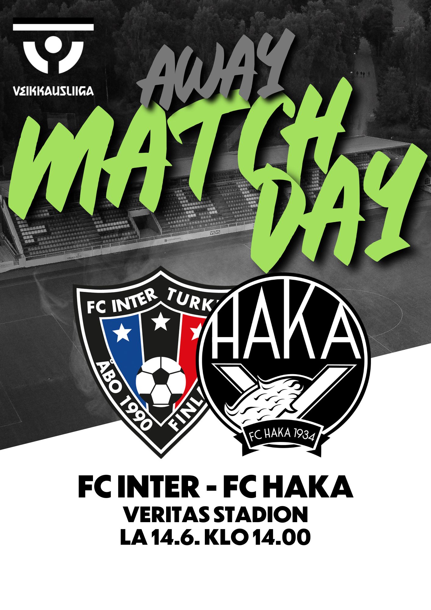 Hakan kannattajat ry järjestää kannattajamatkan ylihuomenna lauantaina 14.6. kello 14:00 Turussa pelattavaan FC Inter – FC Haka -otteluun. Matkan hinta on jäsenille 20€ ja muille 25€. Matka toteutuu, ja mukaan mahtuu vielä! Vietä Jalkapallopäivää parhaimmalla tavalla, eli paikan päällä!