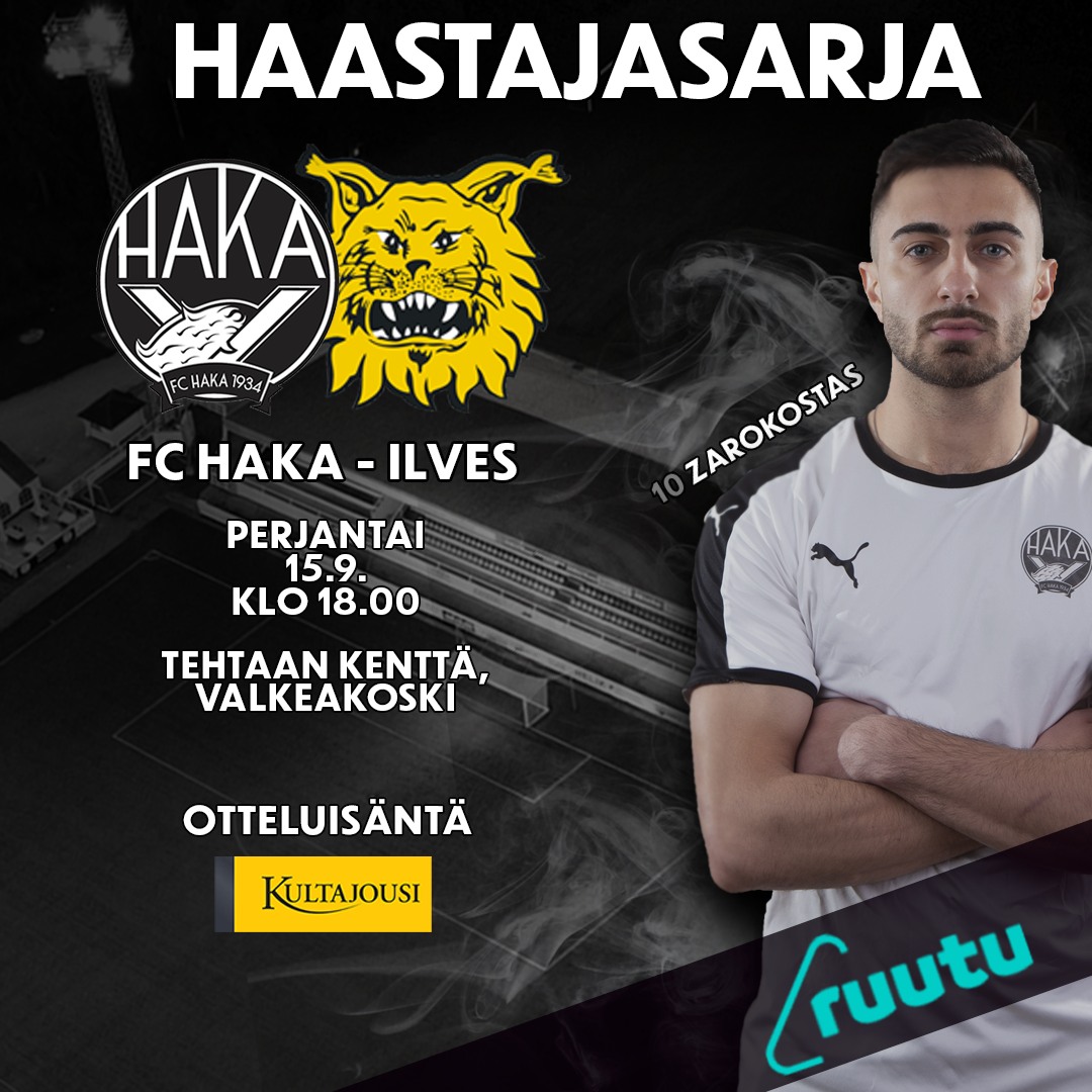 Veikkausliigakauden huipennus käynnistyy perjantaina, kun jatkosarjat pyörähtävät käyntiin. Haka sijoittui runkosarjassa kahdeksanneksi, minkä ansiosta valkopaidat saavat Haastajasarjaan kolme kotiottelua. Ensimmäisenä vastaan astelee rakas paikallisvastustaja Tampereelta, kun Ilves saapuu Tehtaan kentälle kello 18.00 alkavaan otteluun.