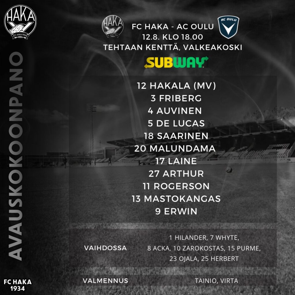 Voitolla Haka nosti itsensä Oulun ohitse sarjataulukon neljännelle sijalle ja tukevoitti entisestään paikkaansa ylemmässä loppusarjassa. Valkopaitojen pelit jatkuvat ensi viikon sunnuntaina Tehtikselle, jolloin vieraaksi saapuu Hesingin Jalkapalloklubi. Haka ei ole vielä kertaakaan onnistunut Klubia viimeisten kolmen kauden aikana Veikkausliigassa voittamaan, mutta tällä kertaa se voisi olla jopa mahdollista.