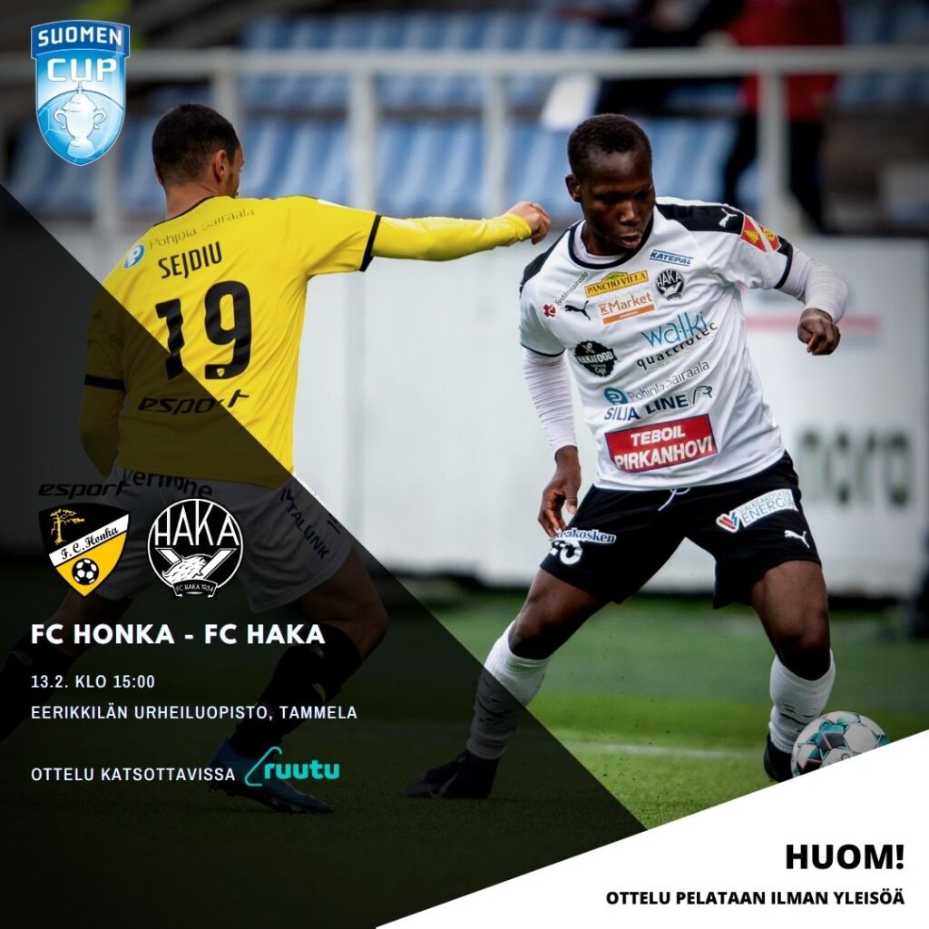 Viime lauantaina maukkaalla 3-0 -voitolla Cupin aloittanut FC Haka lähtee tavoittelemaan jatkopaikkaa FC Honkaa vastaan luottavaisin mielin.