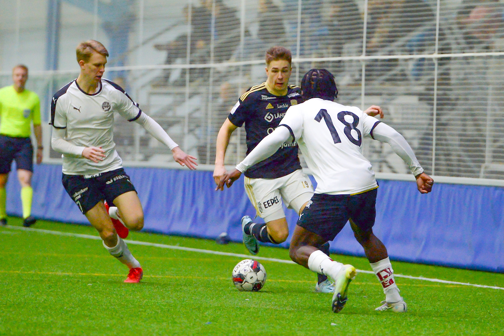 Toisen jakson alkuun valkopaitojen Oiva Laaksosella oli mahdollisuus iskeä kauden toinen maalinsa, kun mies katkoi kauas maalilta tulleen Ovie Ejeherin syötön ja yritti roikottaa pallon tyhjää maaliin. Yritys meni kuitenkin puolisen metriä ohi vasemman tolpan.