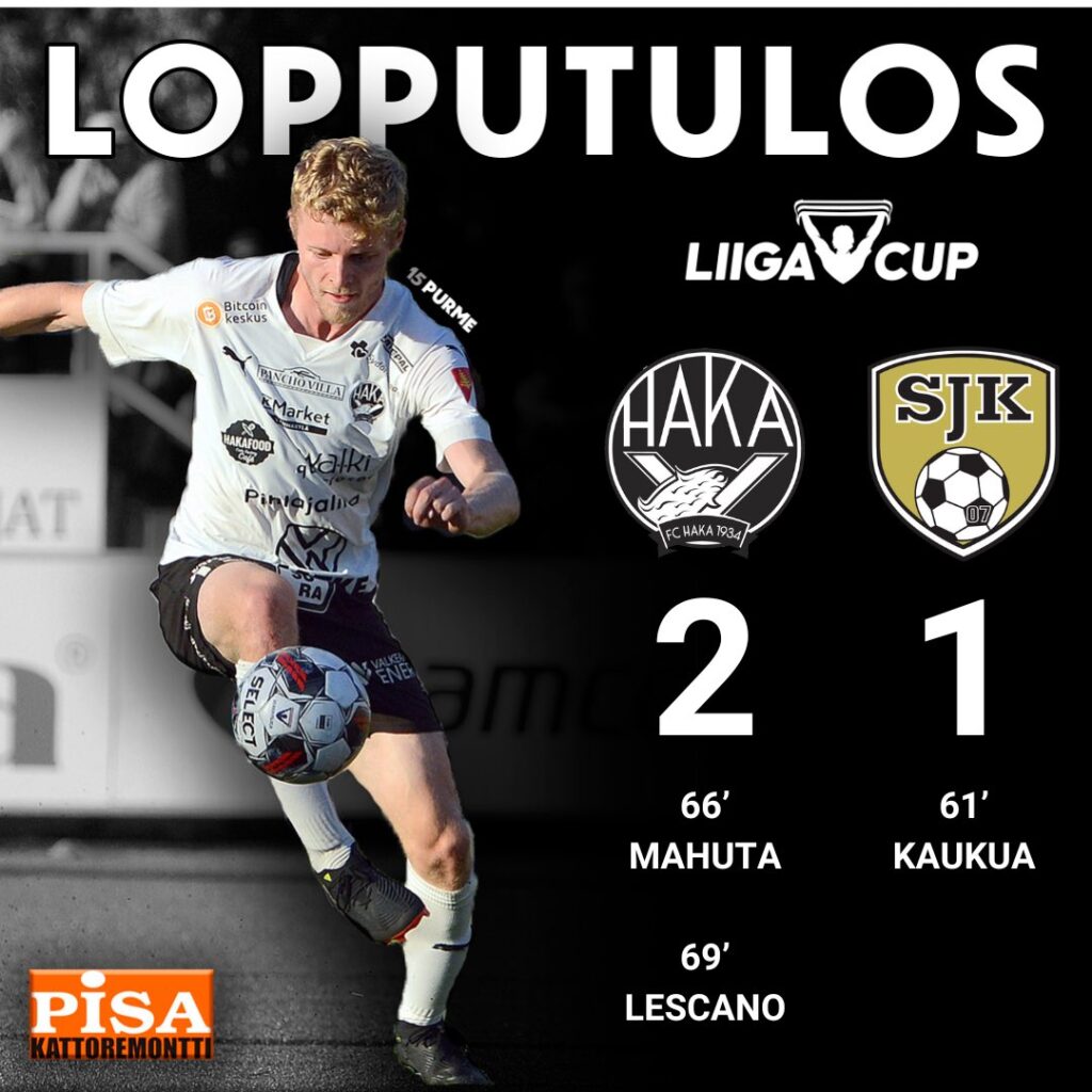 FC Haka ja Seinäjoen Jalkapallokerho kohtasivat Eerikkilän urheiluopistolla sunnuntai -iltapäivänä Liigacupin kolmannen kierroksen ottelussa. Vierailija SJK aloitti maalinteon, mutta koskilaiset rynnivät nopeasti ohi ja voittivat ottelun lopulta maalein 2-1.