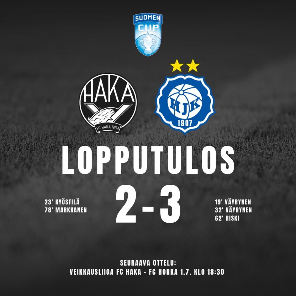 Helteinen lauantai -iltapäivä kääntyi iltaan HJK:n jatkaessa Suomen Cupin finaaliin ja hienosti läpi kevään pelannut Haka saa nyt keskittyä täysillä Veikkausliigaan, mikä pyörähtää käyntiin ensi keskiviikkona vihdoinkin. Tuolloin Tehtaankentälle saapuu FC Honka.