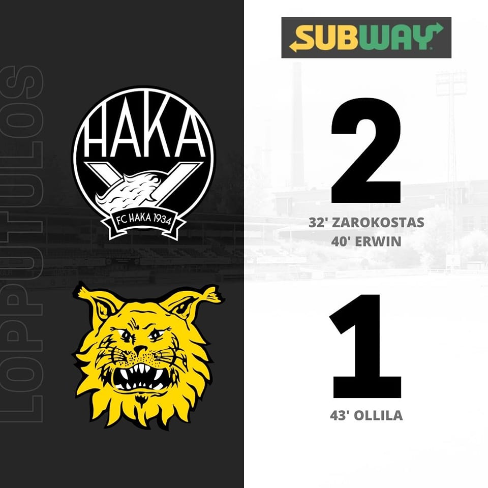 Maalinteon aloitti kotijoukkue, kun Lee Erwin pommitti vasemmalta etutolppaan. Hyökkääjän veto kimposi maata pitkin toisella puolella odotelleelle Stavros Zarokostasille, mistä kreikkalainen pääsi täysin rauhassa sijoittamaan uransa ensimmäisen Veikkausliigamaalin pelikellon näyttäessä 32. minuuttia.