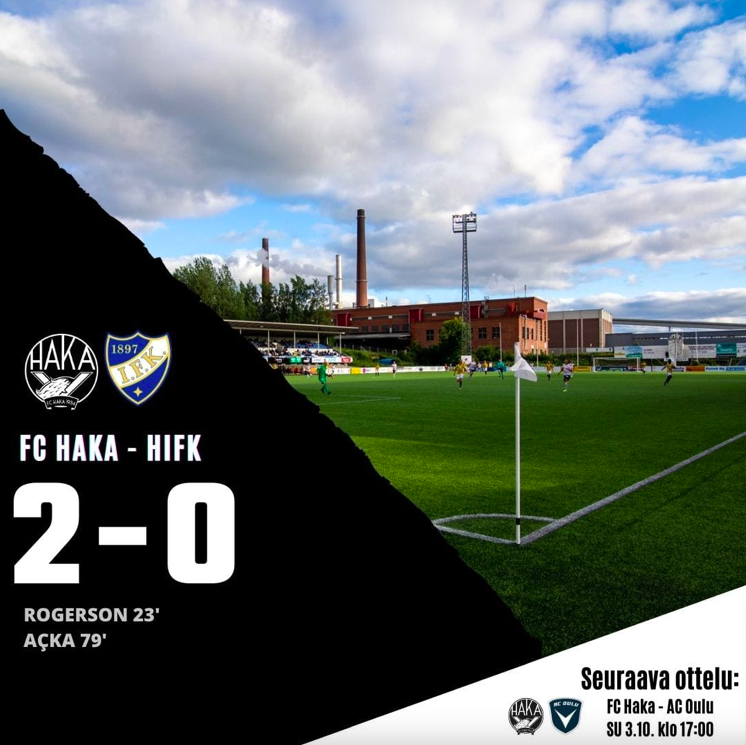 Lopullinen niitti ottelulle nähtiin 80. minuutilla, kun Haka iski loppulukemiksi 2-0. Maali syntyi kulmasta, mikä oli seurausta Rogersonin keskityksestä, minkä de Lucas puski HIFK -maalivahti Markus Uusitalon sormien kautta kulmaksi. Pallon taakse asteli Maximus Tainio, jonka maalin edustalle suuntautuneen keskityksen puski sisään Donaldo Acka.