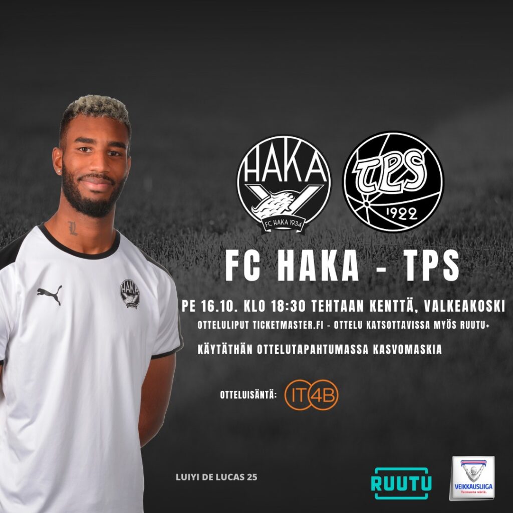 FC Haka kohtaa äärimmäisen tärkeässä ottelussaan Turun Palloseuran perjantaina 16.10. klo 18.30 Tehtaankentällä. Kiihtyvästä korona -tilanteesta huolimatta, meillä on edelleen mahdollisuus ottaa yleisöä kotiotteluihimme. Haluamme kuitenkin järjestää ottelutapahtumamme vastuullisesti, joten FC Haka pyytää, että kaikki tapahtumaan saapuvat käyttävät kasvomaskia.