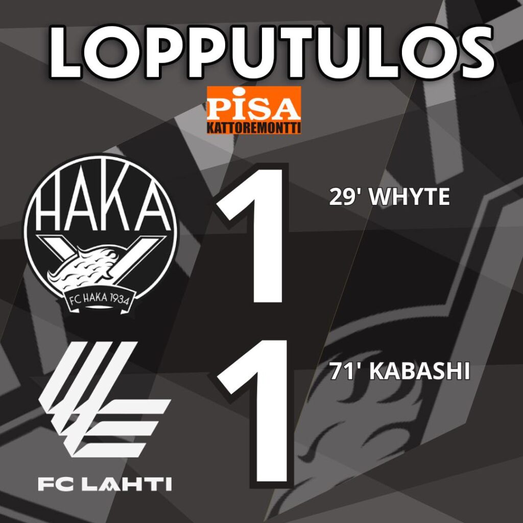 FC Haka kohtasi FC Lahden sunnuntai -päivän ”Musariottelussa” Tehtaan kentällä. Molemmille joukkueille täysi pistepotti olisi kelvannut, mutta tällä kertaa pisteet tasattiin maalein 1-1.