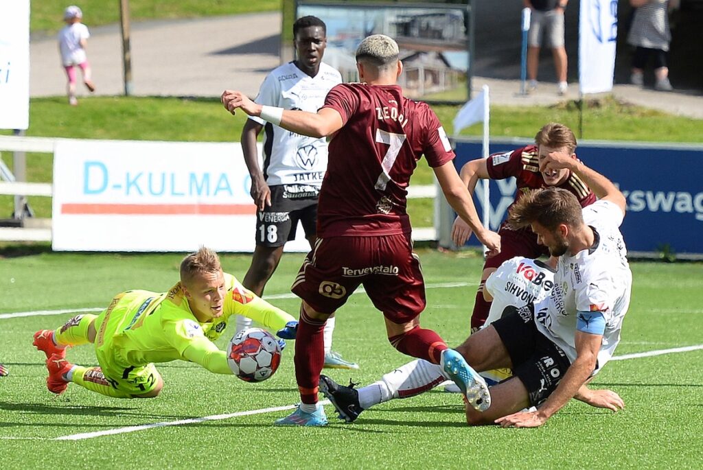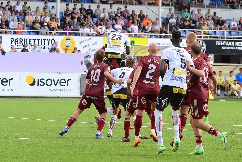 Koskilaisten puolustuspeli oli uhrautuvaa ja lahtelaiset saivat kokea valkopaitojen fyysisyyden useaan otteeseen. Vierasjoukkueen tasoitusosuma syntyikin Ryan Mahutan pelattua aavistuksen liian kovaa. Mikko Kuningas lähetti oikealle kiertävän vapaapotkun kohti kuudentoista keskustaa, Arian Kabashi jatkoi sen päällään ja lopulta Juan Lescano epäonninen purku kimposi omaan maaliin 71. minuutilla.