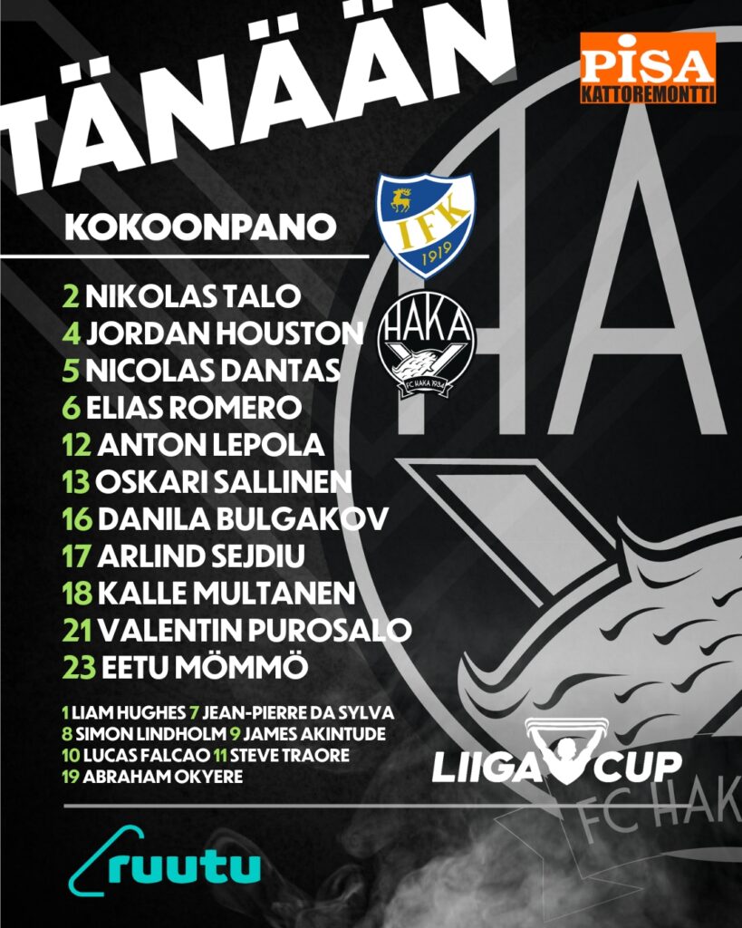 Päävalmentaja Andy Smith oli tehnyt lukuisia muutoksia edelliseen Gnistan -otteluun verraten. Sunnuntain avauskokoonpanosta tänään ottelun alkaessa kentällä nähtiin Nicolas Dantas, Jordan Houston, Elias Romero ja Valentin Purosalo. Uusina avauksessa nähtiin kapteeninnauhaa kantanut Nikolas Talo, Anton Lepola, Oskari Sallinen, Danila Bulgakov, Arlind Sejdiu, Kalle Multanen ja Eetu Mömmö. Täydet minuutit pelaajista kirjauttivat Lepola, Talo, Houston, Dantas ja Purosalo.