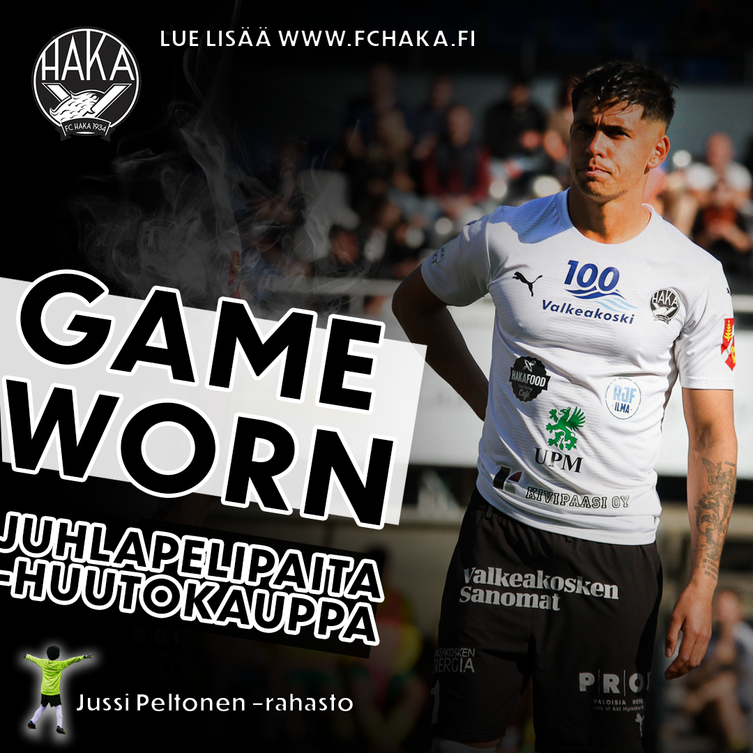Tänä vuonna olemme viettäneet Valkeakosken kaupungin 100-vuotisjuhlia. FC Haka oli mukana suuressa juhlavuodessa erityisesti järjestämällä Valkeakoski100 -juhlaottelun 7.6. FC Haka-Ilves. Valkeakoski 100v. -juhlaottelun 1. puoliaika pelattiin juhlapelipaidoissa, jotka huutokaupataan. Huutokauppa toteutetaan huuto.net-palvelussa huomisesta klo 11 eteenpäin. Huutokauppa on käynnissä vähintään 10.10.2023 asti.