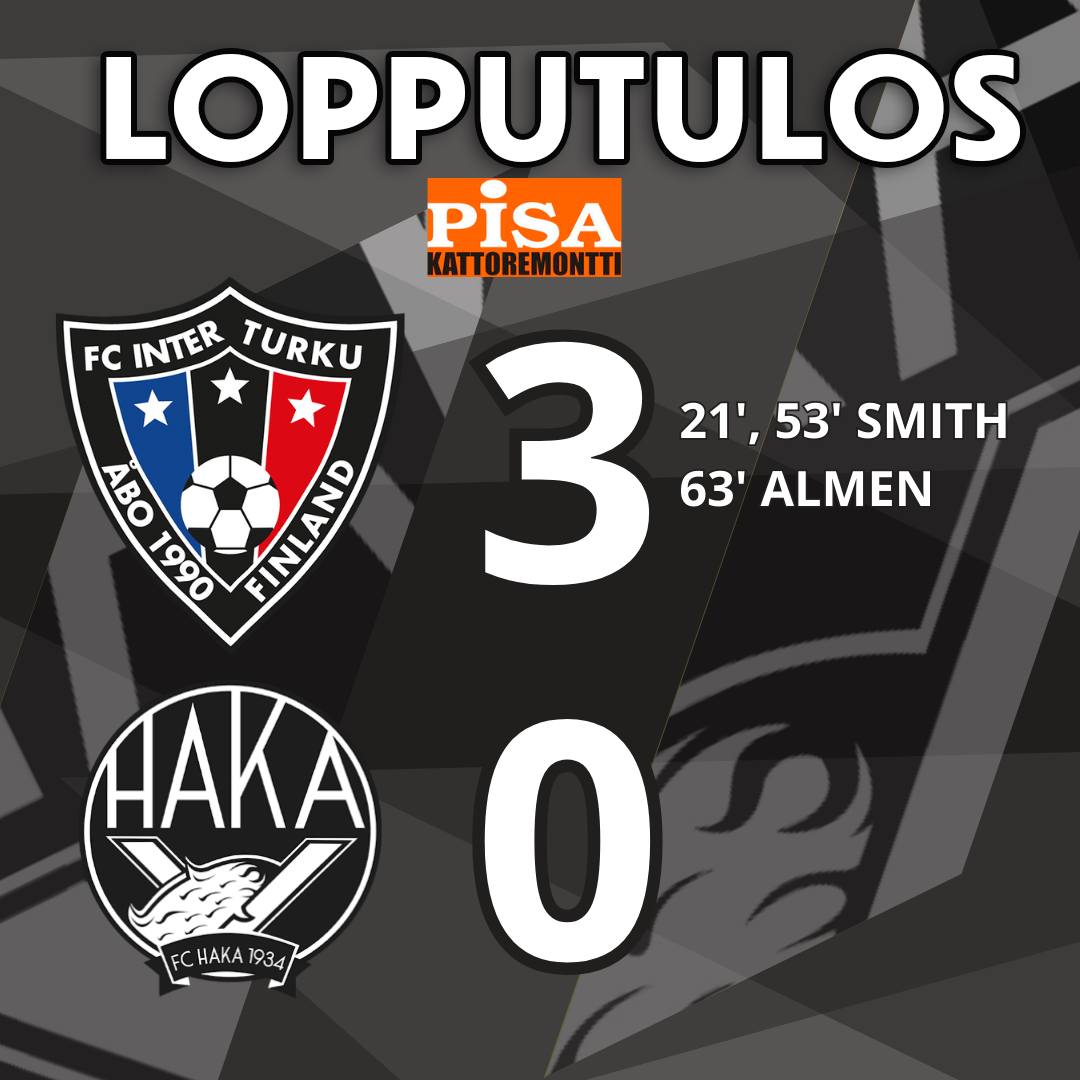 Hakalla oli toki ensimmäisen jakson lopussa vahva ote pelistä ja maalikin roikkui ilmassa. Mutta kun tasoitusosumaa ei nähty, niin Inter otti kuskin paikan uudelleen, kun Smith iski pallon toisen kerran Hakalan selän taakse 53. minuutilla.