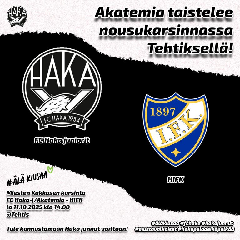 Jo tällä viikolla Tehtiksellä riittää jännitettävää, kun FC Hakan Akatemia taistelee upean kauden päätteeksi noususta Miesten Kakkoseen!