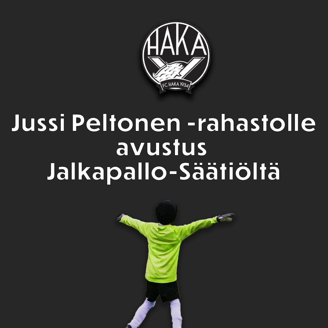 Jussi Peltonen –rahastoon voi koska vain lahjoittaa sopivaksi katsomansa summan (Osuuspankin) tilille FI36 5494 0920 0193 06 / Football Club Haka ry ja merkitsemällä viestikenttään ”Tukirahasto/lahjoittajan nimi”.