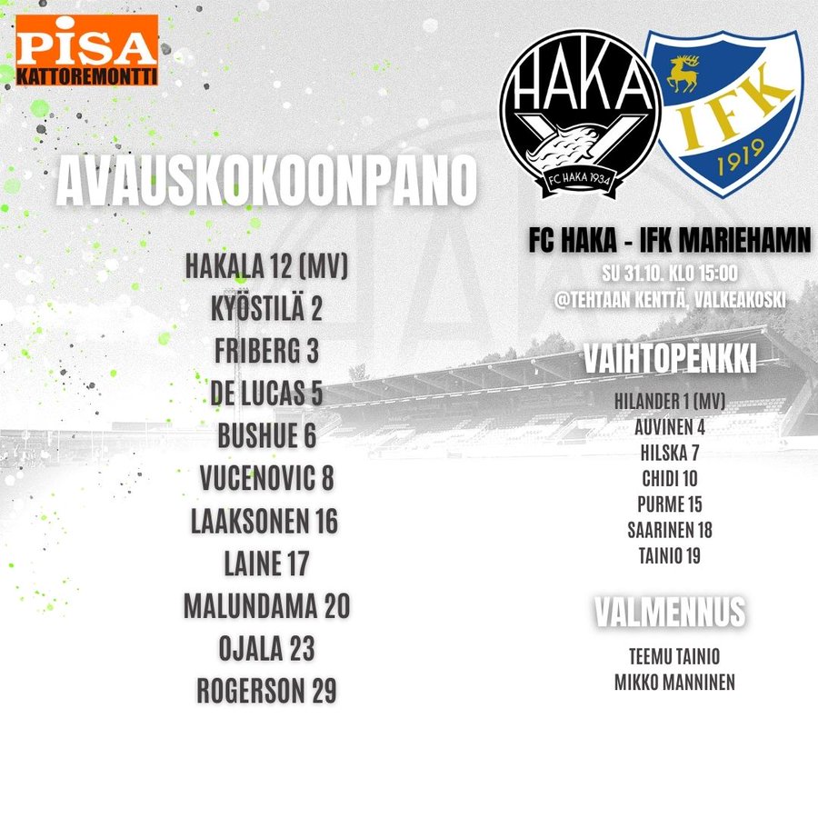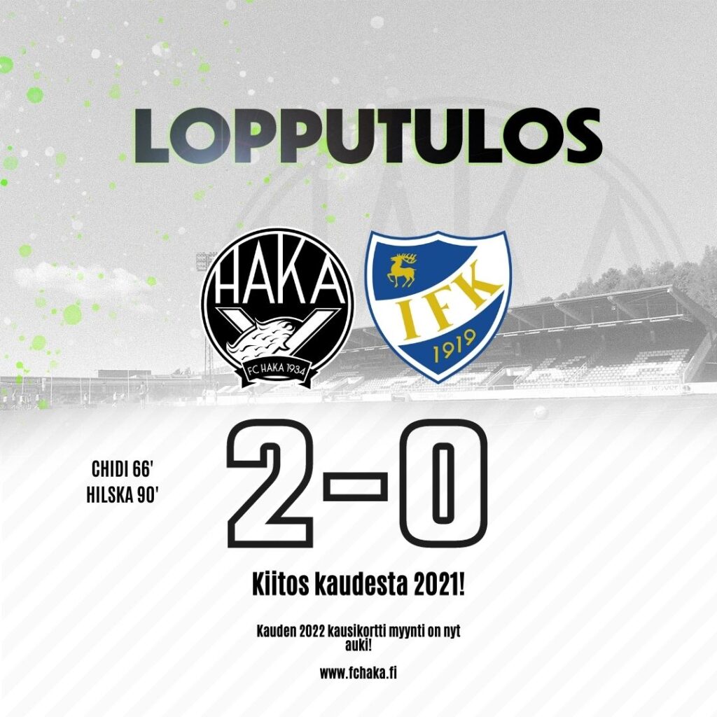 Veikkausliigakausi 2021 sai huipennuksen Hakan osalta sunnuntaina Tehtiksellä, kun vieraaksi saapui IFK Mariehamn. Seitsemän ottelun tappiottomassa putkessa ollut Haka lähti hakemaan putken jonoksi vielä yhtä voittoa, jolla irtoisi sarjan kahdeksas sija.
