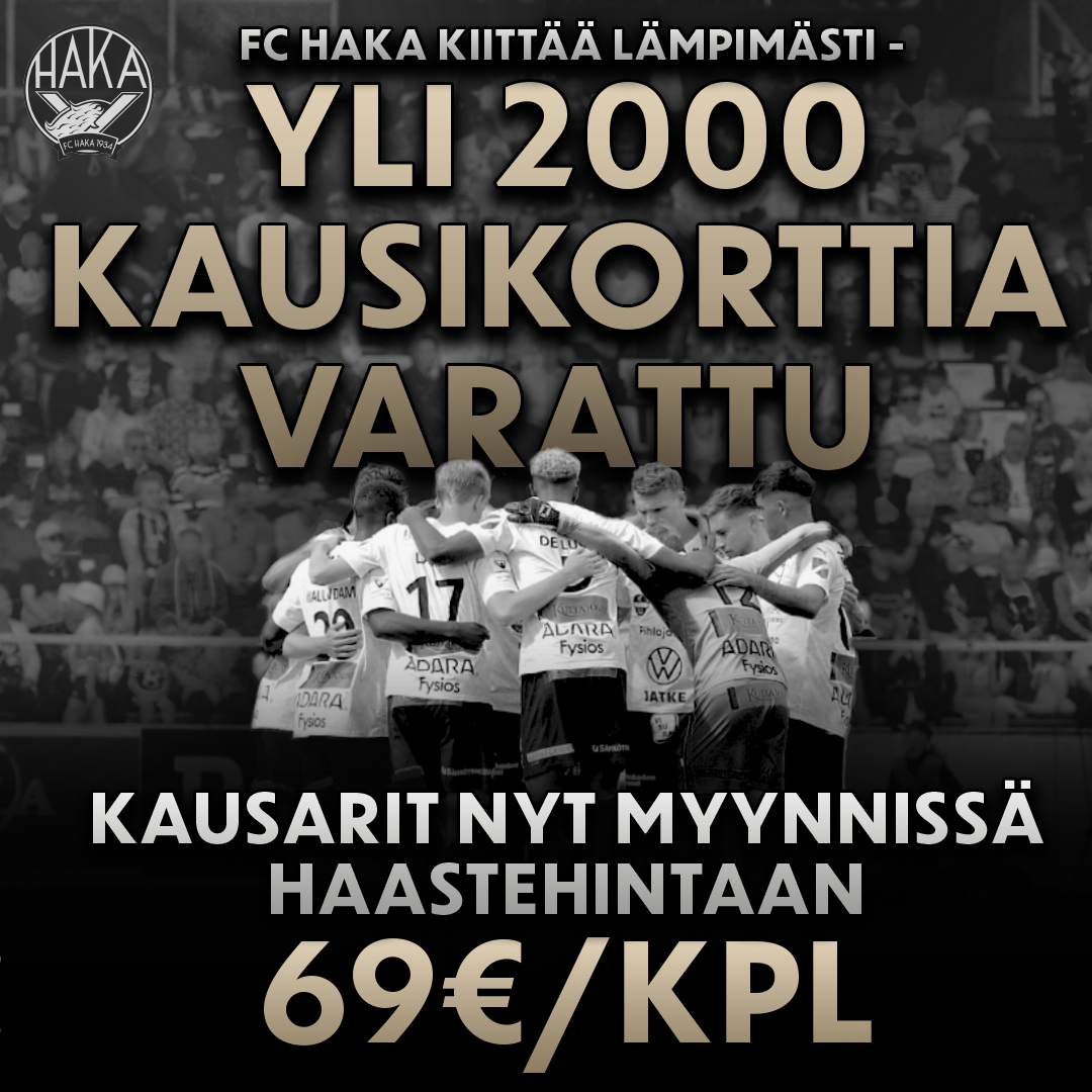 – Olemme valtavan tyytyväisiä ja iloisia siitä, kuinka kausikortit jälleen ovat kiinnostaneet ihmisiä. Haluamme toteutuneen Europaikan ja menestyksekkään kauden kunniaksi tarjota kausikortin ostomahdollisuuden kaikille edelleen 69 euron hintaan, kertoo FC Hakan toimitusjohtaja Olli Huttunen.