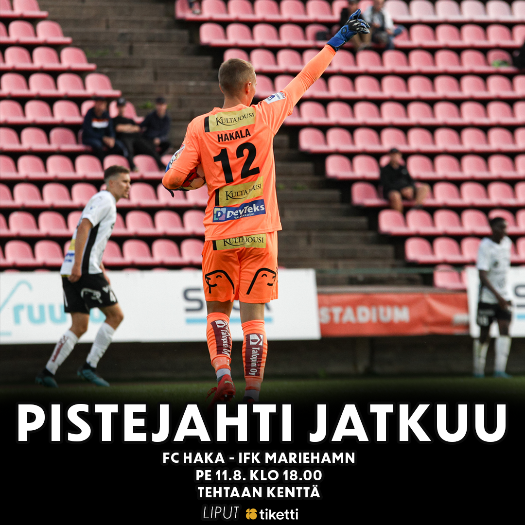 FC Haka palasi voittojen tielle makeimmalla mahdollisella tavalla perjantaina, kun joukkue nappasi paikallisderbystä todella tärkeät kolme pistettä mukaan. Tasainen Veikkausliigan sarjatilanne pitää huolen siitä, että pistejahti kuumenee entisestään ja voittojen merkitys on suuri. Seuraava kuuden pisteen ottelu onkin jo pian, kun FC Haka ja IFK Mariehamn ottavat yhteen Tehtaan kentällä perjantaina 11.8.