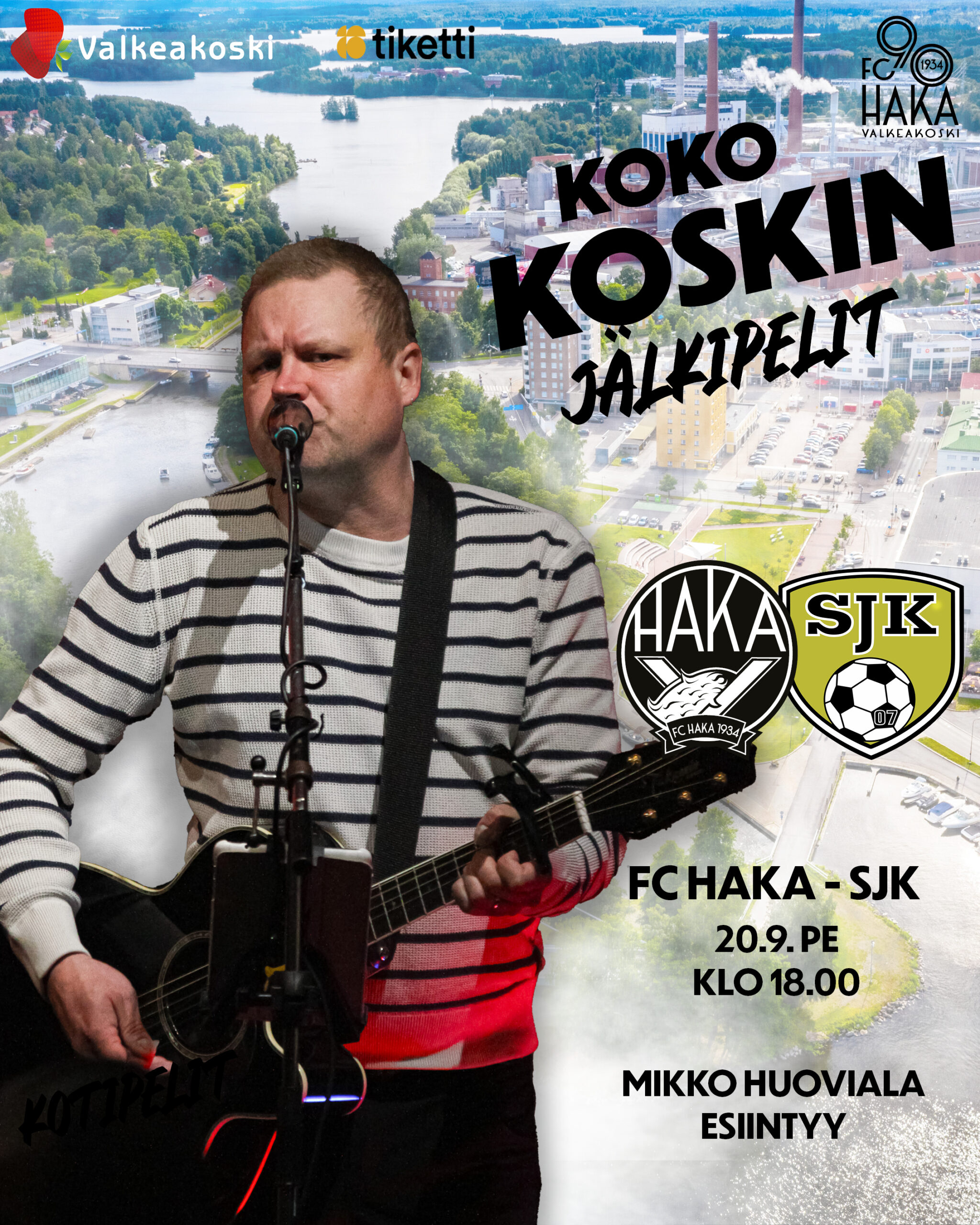 20.9. klo 18.00 alkavassa SJK-ottelussa luvassa ottelun jälkeen on myös Koko Koskin Jälkipelit, jonne on kaikilla vapaa pääsy. Jälkipeleillä haastateltavana tuttuun tapaan päävalmentaja Andy Smith sekä FC Hakan pelaajia, sekä juhlan kunniaksi livemusiikki raikaa heti ottelun päätyttyä! Paviljongissa tunnelmaa luo Suomen Kesäteatterissa valtakunnallisestikin kehuja kerännyt, koskilainen monilahjakkuus Mikko Huoviala!