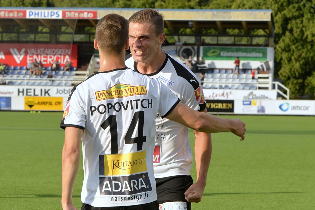 Peli ei kuitenkaan ratkennut tähän, vaan päinvastoin kotijoukkue piristyi takaiskusta ja tuli erittäin vakuuttavasti tasoihin jo seitsemän minuuttia myöhemmin. Antto Hilska käänsi pelin nopeasti keskikentän tuntumasta ja parilla lyhyellä syötöllä pallo kierrätettiin Anton Popovitchille, joka viimeisteli yhtä varmasti, kuin Sale hetkeä aiemmin.