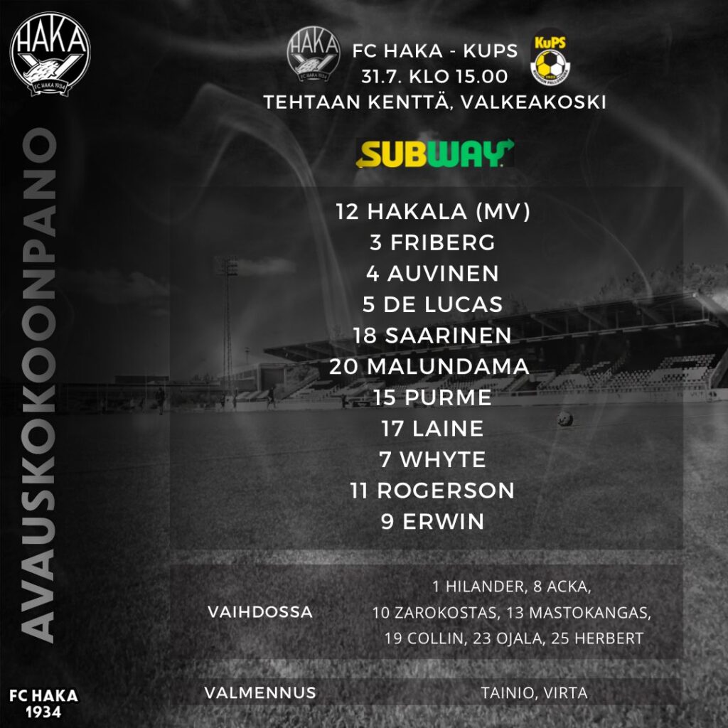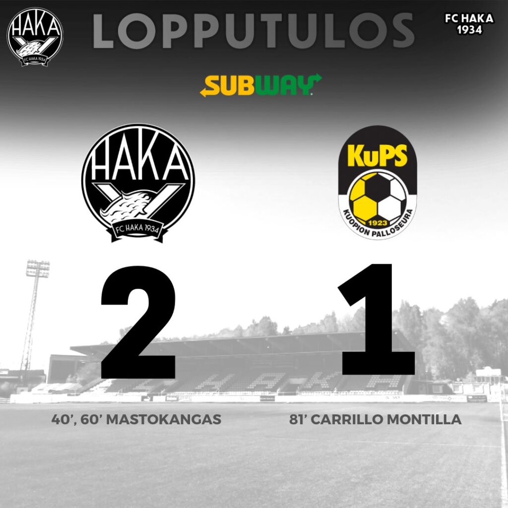 FC Haka nousi Veikkausliigan neljänneksi, kun se kaatoi sunnuntai -päivän Musariottelussa Kuopion Palloseuran upeasti 2-1 2836 katsojan edessä!