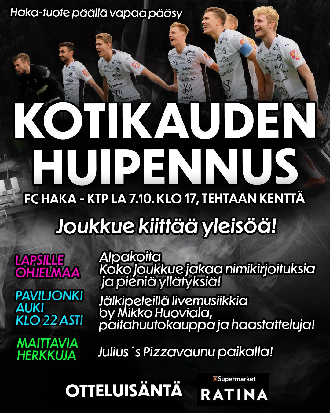 FC Haka – KTP alkaa lauantaina 7.10. klo 17.00, otteluisäntänä K-Supermarket Ratina!