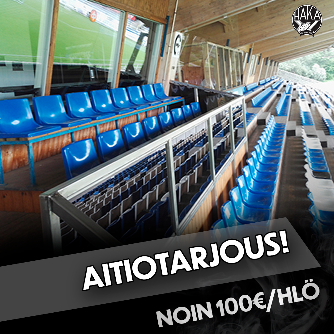 Aitioita tarjolla max. 12 hengelle nyt vain 1200 €. Tarjoukseen sisältyy pääsyliput otteluun, ruokailu kolmen ruokajuoman kera Hakaklubilla ennen ottelua, itse ottelun seuraaminen aitiosta ja puoliaikakahvit. Erikoistarjouksena pakettiin laitetaan kirsikaksi kakun päälle mukaan vielä kaikille osallistujille FC Hakan viralliset fanituotteet!