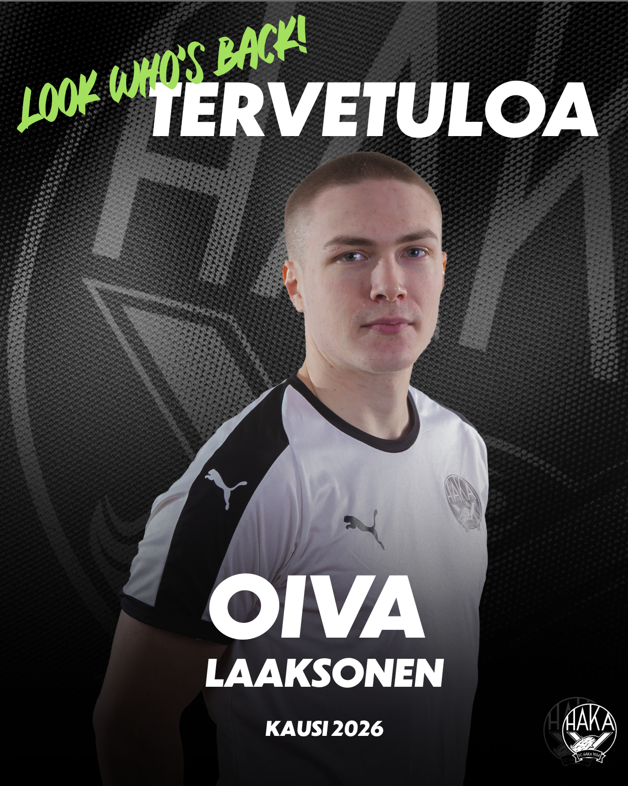 FC Hakaa kausilla 2022-2024 edustanut Oiva Laaksonen palaa kauden 2026 kattavalla sopimuksella valkopaitoihin.