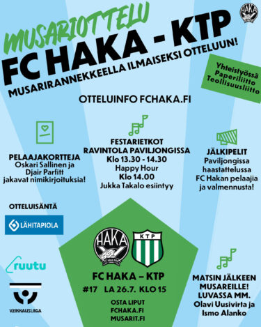 Musariotteluinfo: FC Haka – KTP la 26.7....