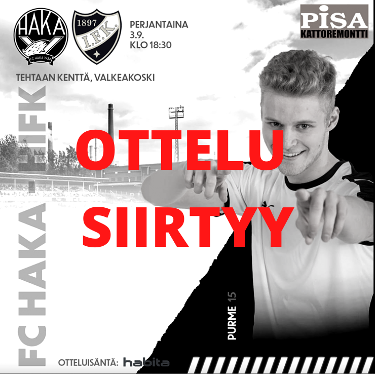 Perjantain 3.9. FC Haka – HIFK -ottelu siirretään myöhempään ajankohtaan