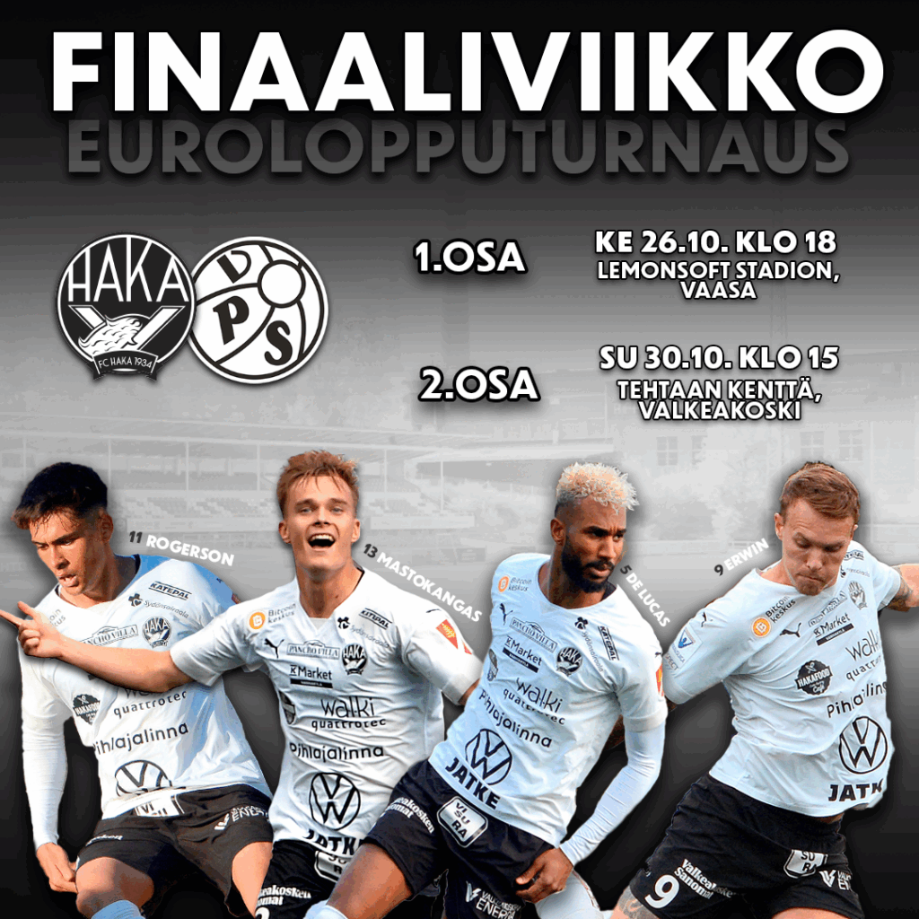 Eurolopputurnauksen finaali alkaa keskiviikkona ja vastustaja on selvillä. Turnauksen välierissä vastakkain olivat AC Oulu – VPS. Vaasalaiset veivät pidemmän korren, ja täten Haka kohtaa VPS:n kaksiosaisessa finaalissa keskiviikkona vieraissa sekä sunnuntaina Tehtaan kentällä.