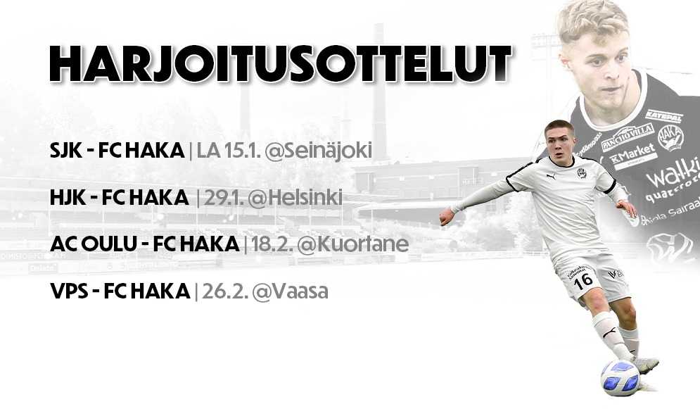FC Haka on sopinut tammi- ja helmikuulle yhteensä neljä harjoitusottelua, mitkä kaikki pelataan vieraskentillä. Ensimmäisenä on vuorossa ottelu Seinäjoen Jalkapallokerhoa vastaan tulevana lauantaina kello 15.00.