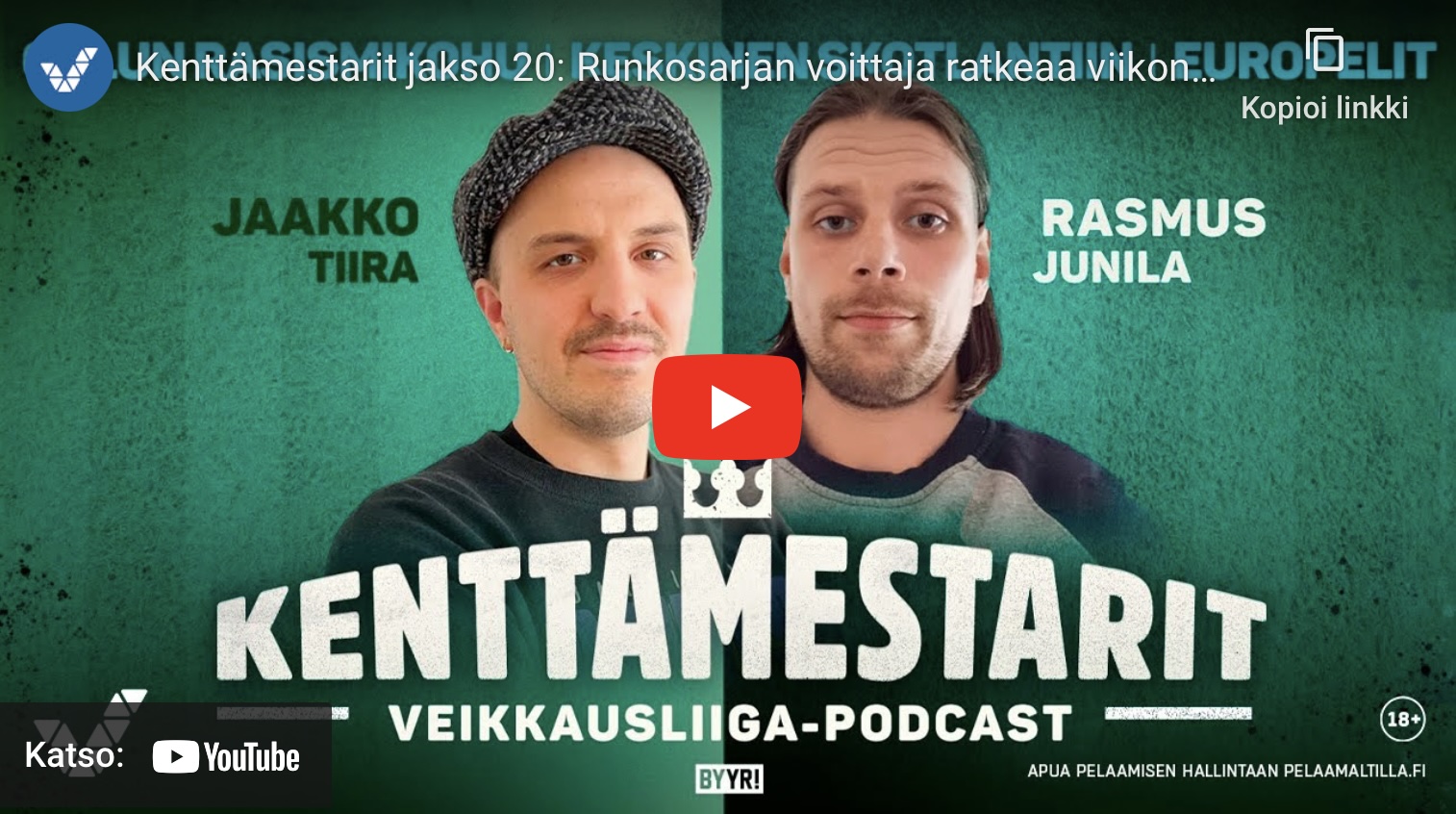 Kenttämestarit-videopodcast pureutuu Veikkausliigan ajankohtaisiin puheenaiheisiin ja uusin jakso löytyy Veikkausuutisista: