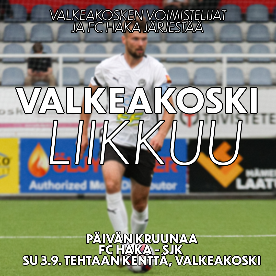 Valkeakoski liikkuu-tapahtuma kokoaa Suomen kauneimmalle kentälle, Tehtikselle, koskilaisia liikuntaseuroja esittelemään toimintaansa ja liikuttamaan koskilaisia sunnuntaina 3.9. ja päivä huipentuu FC Haka – SJK-otteluun!