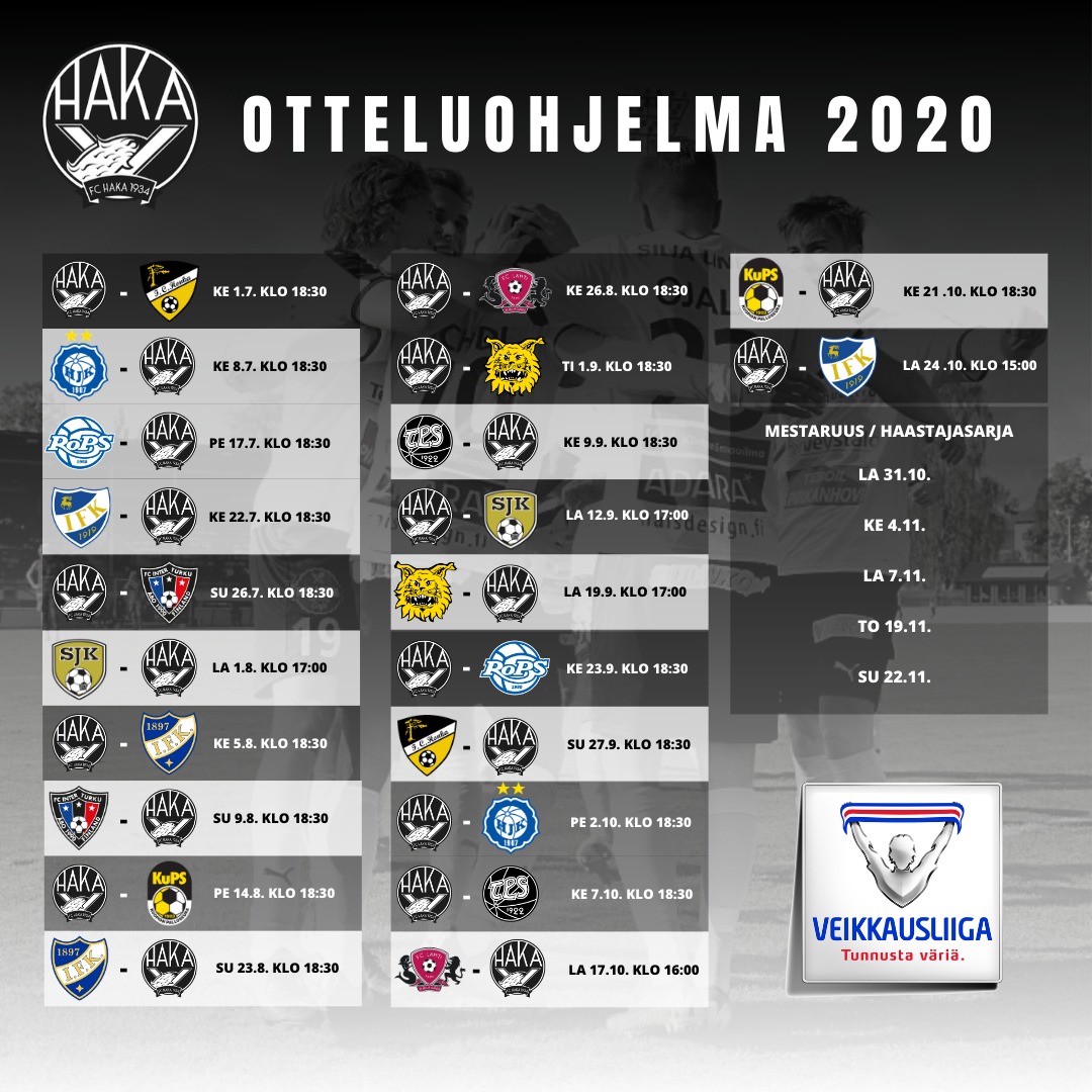 Veikkausliigan otteluohjelma on vihdoinkin julkistettu ja sieltä paljastuu hakalaisille iloisia uutisia, sillä paluu liigakentille päästään tekemään heti kauden avausottelussa keskiviikkona 1.7. jolloin vastaan asettuu FC Honka.