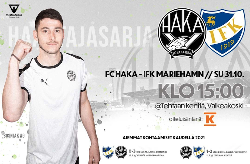 Veikkausliigakausi 2021 päättyy sunnuntaina 31.10.2021, jolloin FC Haka saa viimeiseen otteluunsa vieraaksi IFK Mariehamnin. Panoksena ottelussa ei ole enempää, eikä vähempää, kuin sarjataulukon kahdeksas sija.