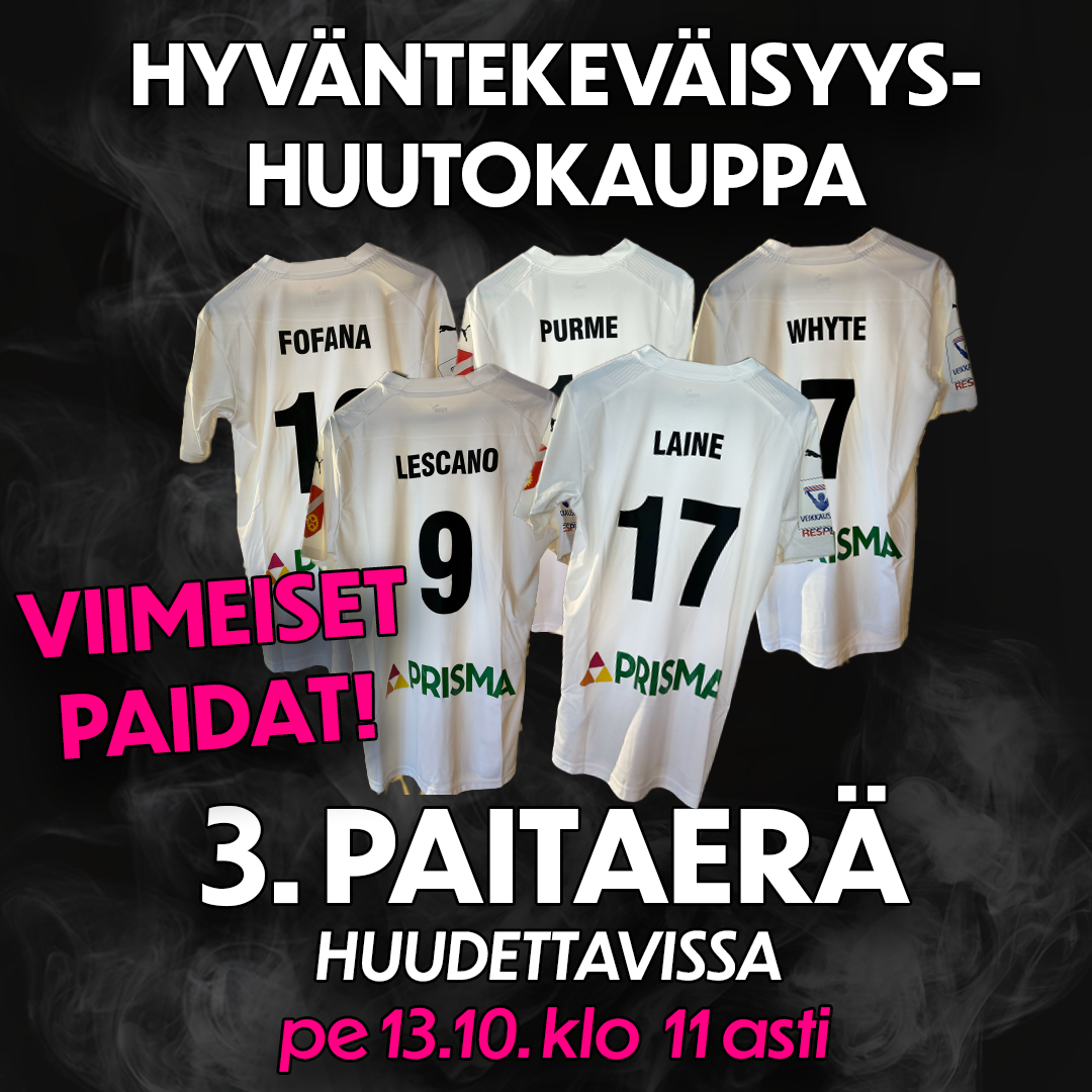 Ps. Jos et löydä huutokaupasta suosikkipelaajaa, niin pari paitaa löytyy myös Japen pelipaidan lisäksi huomisen 7.10. FC Haka – KTP-ottelun paitahuutokaupasta Jälkipeleiltä, jossa tiedossa yllätyspaitoja! Kannattaa huutaa myös Tehtiksellä, liput otteluun Tiketistä!